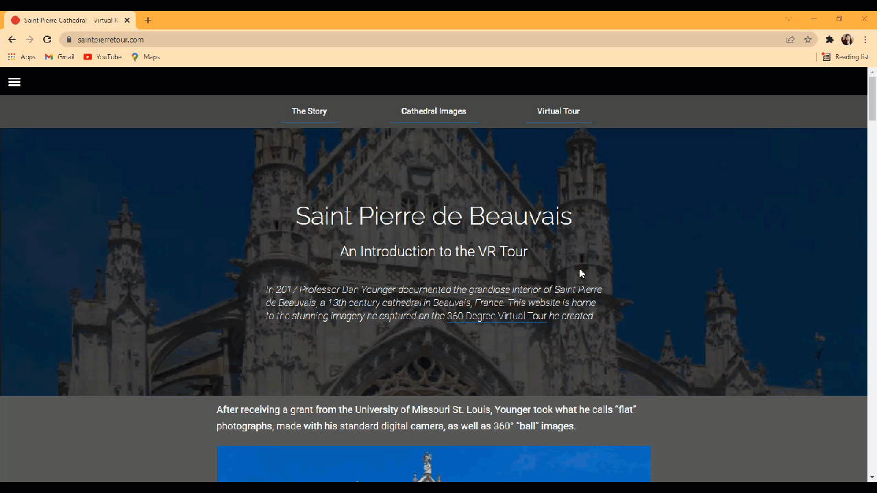 In 2017 Professor Dan Younger documented the grandiose interior of Saint Pierre de Beauvais, a 13th century cathedral in Beauvais, France. This website I had the pleasure of building is home to the stunning imagery he captured and the 360 Degree Virtual Tour educators can easily access.